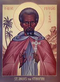 In 2004, the students of St. Peter's Parish Church in Washington, DC held an election for the patron saint of the seventh grade. I don't know the results, but with a campaign video like this one, I don't see how he could have lost. Also known as Abba Moses the Robber, he was an Ethiopian held in slavery in Egypt during the fourth century. Suspected of theft and perhaps murder, he was sent away by his master. Right away, I am suspicious. Although he was born into slavery so there would not be much direct monetary loss to letting him go, it does seem like a substantial opportunity cost. Why let him walk if you could take him to the market and realize at least the cost of having fed him since childhood? Moreover, what sort of message does it send to the other slaves that Moses won his freedom through crime? But the story says that Moses was dismissed, but so I'll stick with that.